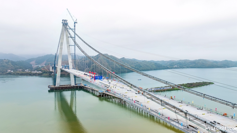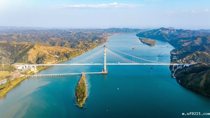 据悉,藤州浔江大桥是广西平南至岑溪高速公路的关键控制性工程之一,全长1604米,主跨采用2×638米全漂浮体系钢箱梁,主塔为“三角塔”造型,塔高238米,是广西最高桥塔。